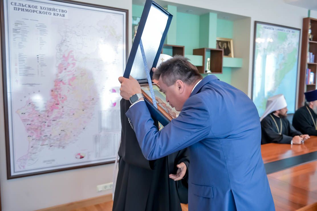 На встрече, проходившей в кабинете губернатора, владыку Илариона сопровождал сотрудник ОВЦС Д.И.Петровский; владыку Вениамина сопровождал секретарь Владивостокской епархии протоиерей Игорь Талько.