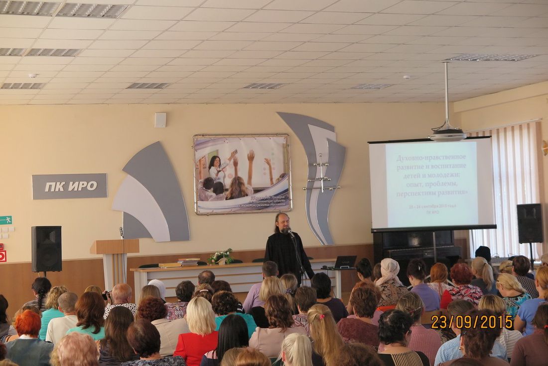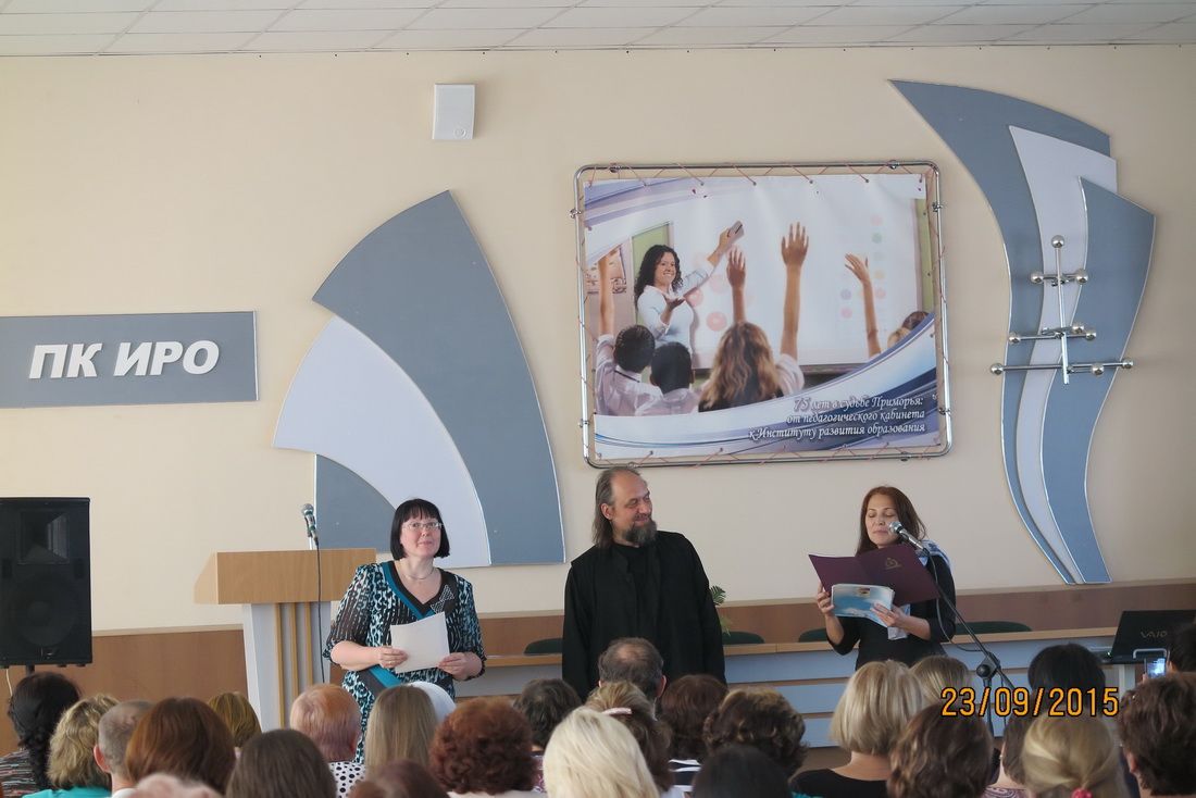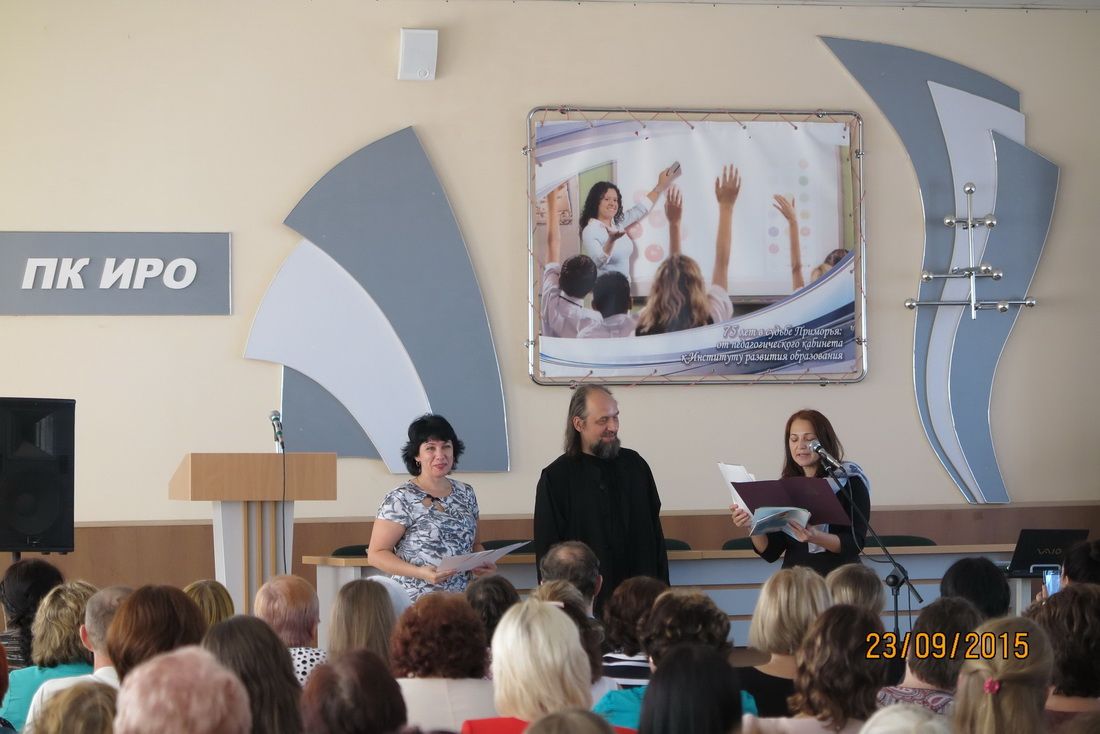 На конференции выступили председатель отдела религиозного образования и катехизации Владивостокской епархии протоиерей Ростислав Мороз, врио ректора ГОАУ ДПО ПК ИРО Инна Дмитриевна Ставская.