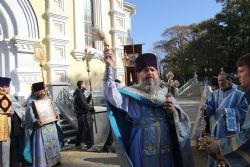 В сам день праздника, 14 октября, ключарь собора протоиерей Александр Талько в сослужении клира собора совершил Божественную литургию в сослужении с клириками прихода. Затем состоялся водосвятный молебен и крестный ход вокруг храма с иконой Покрова Божией Матери.