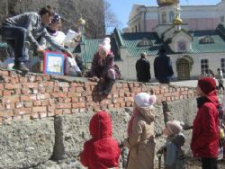 В воскресенье, после Чина Торжества Православия юные прихожане Успенского храма устроили на церковном дворе бумажный телесеанс.