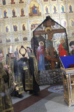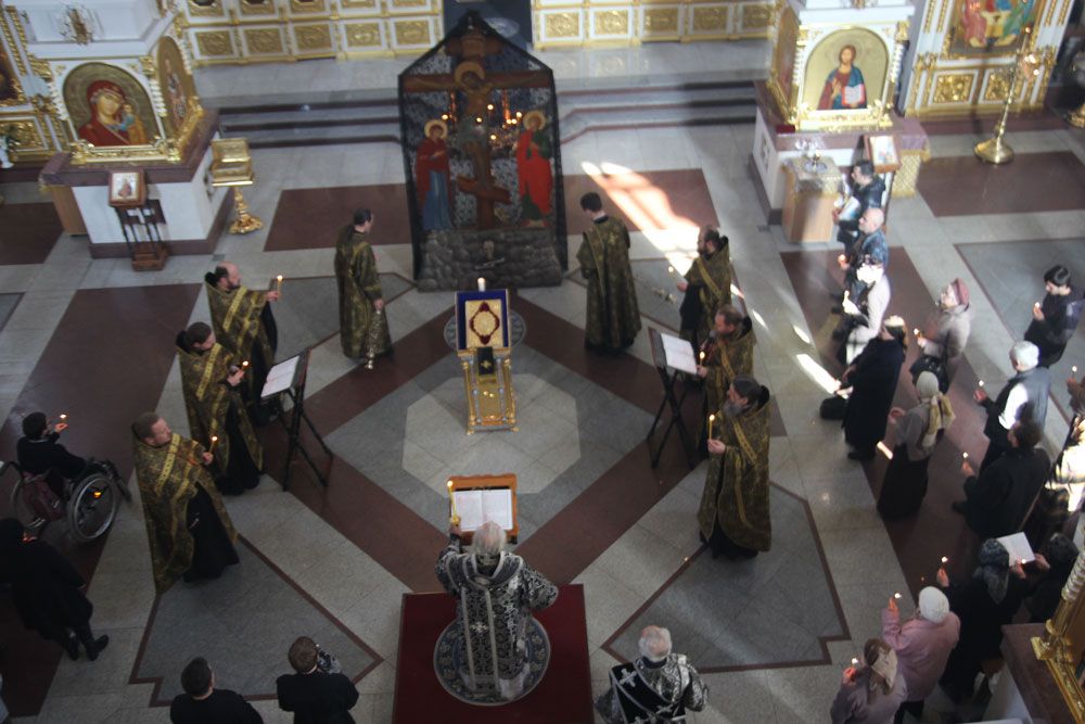 В завершение митрополит Вениамин совершил коленопреклонную молитву. Духовенство и молящиеся приложились ко Кресту.