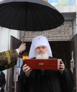 Владивосток. По благословению Святейшего Патриарха Московского и всея Руси Кирилла во Владивосток накануне Страстной седмицы принесены частицы Святого Животворящего Креста Господня и шипа Тернового Венца Спасителя.