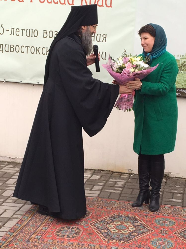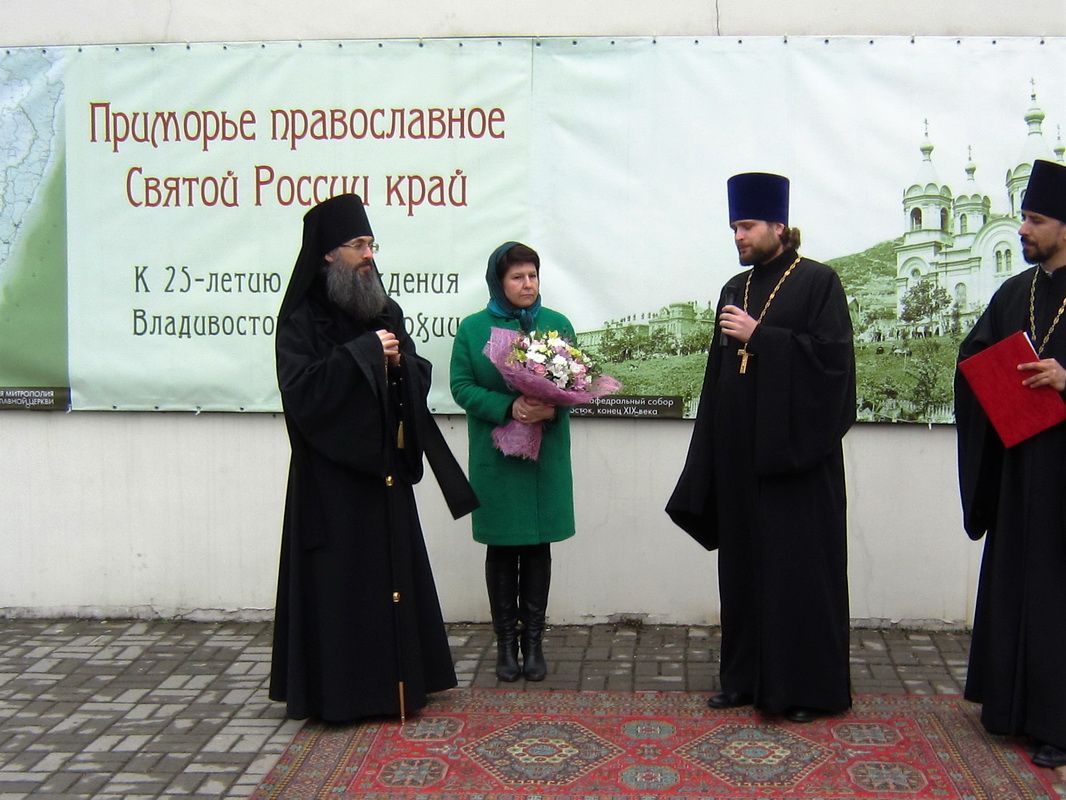 Подарком для всего прихода стала фотовыставка под открытым небом, презентация которой состоялась на территории храма Успения Божией Матери. Экспозиция под названием «Приморье православное. Святой России край» подготовлена приходом совместно с краевым музеем им. Арсеньева и приурочена к двум событиям – 10-летию освящения Успенского храма и 25-летию возрождения Владивостокской епархии. Экспонаты будут постоянно находиться в церковной ограде, поэтому увидеть их смогут все желающие. Интересна эта выставка тем, что здесь наглядно можно проследить по фотоснимкам становление епархии до 1917 г. и ее возрождение после 1991 г. Выставка вызвала большой интерес посетителей.