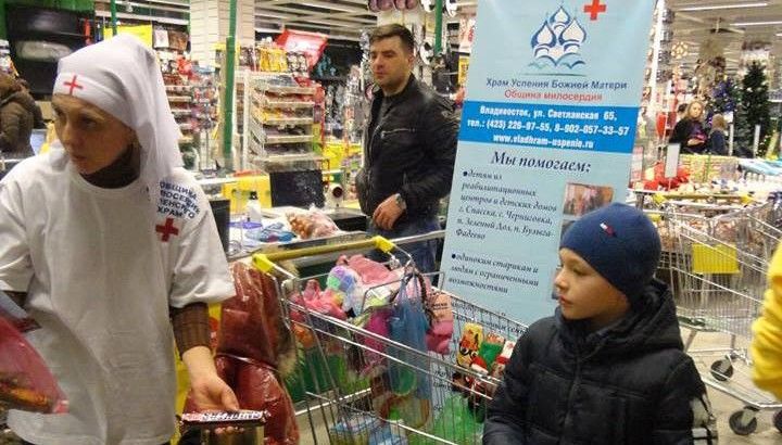 Владивосток. Акция «Встретим Пасху добрыми делами» проводилась по благословению митрополита Владивостокского и Приморского Вениамина во всех храмах епархии. В числе первых, кто отчитался в проведении этой программы, были Сестричество милосердия Успенского храма и Добровольцы службы милосердия Епархиального отдела по церковной благотворительности и социальной работе.
