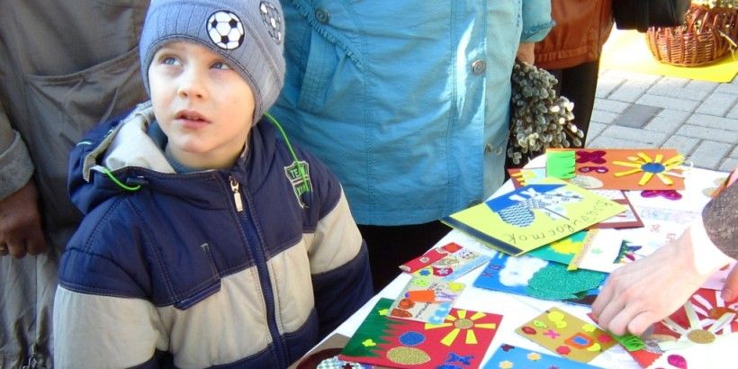 Выставка пасхальных открыток – результат совместного труда приходской «молодежки» и детей из коррекционных центров – также была встречена с большим интересом. Яркие поделки из фольги и цветной бумаги с удовольствием разбирали на память.