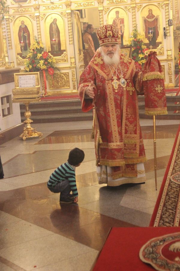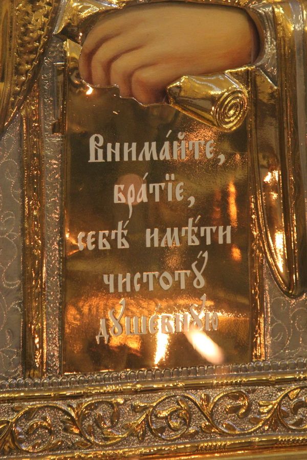 В архипастырском слове Высокопреосвященнейший владыка Вениамин призвал паству особо ценить возможность приобщения к этой святыне и рассказал о схождении Благодатного огня в Храме Гроба Господня в Иерусалиме. "Мы сегодня встретили Пасхальный свет, который озарил наши сердца", - сказал владыка.