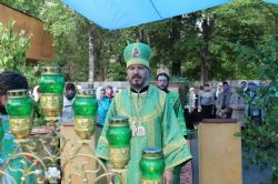Его Преосвященству сослужили: протоиерей Иоанн Березовский, настоятель Сретенского храма г. Партизанска; настоятель храма в честь Казанской иконы Божией Матери с. Казанка, протоиерей Павел Петрунин; благочинный Западного благочиния Находкинской епархии, настоятель храма в честь св. апостола Андрея Первозванного ЗАТО г. Фокино иерей Роман Капитанюк; иерей Алексий Усанов, клирик храма св. апостола Андрея Первозванного г. Фокино.
