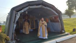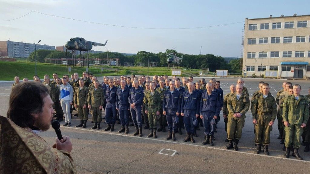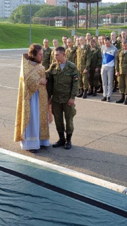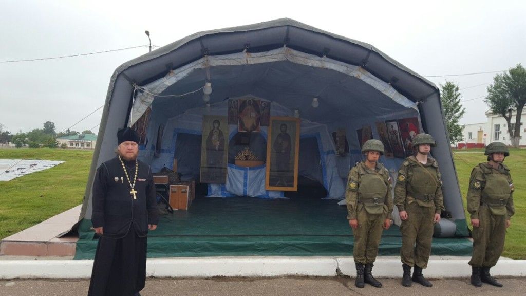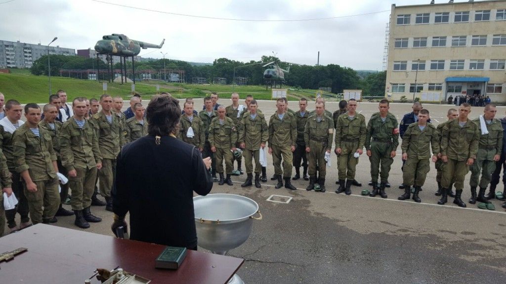 Уссурийск. Ранним утром 28 июня 2016 года на плацу десантно-штурмовой бригады была отслужена Божественная Литургия, совершенная помощником командующего ВДВ по работе с верующими военнослужащими протоиереем Михаилом Васильевым, прибывшим с визитом из Москвы. Ему сослужили: клирик храма Покрова Божией Матери г. Уссурийска иерей Сергий Качев и спутник отца Михаила – отец Савва. Накануне иерей Сергий, являясь духовником десантно-штурмовой бригады, подготовил и совершил вместе с гостями Таинство Крещения над более чем шестьюдесятью бойцами бригады. Литургия была совершена в походном храме, привезенном отцом Михаилом специально для этой цели.