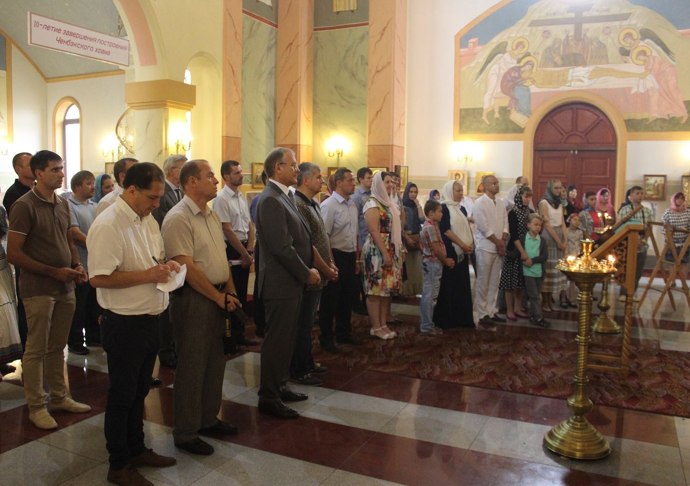 В субботу, 13 августа 2016 года в Пхеньянском храме состоялось всенощное бдение с чином выноса Честного и Животворящего Креста Господня. А в воскресенье, 14 августа, в праздник Происхожде́ния Честны́х Древ Животворя́щего Креста Господня, епископ Богородский Антоний возглавил служение праздничной Литургии. Его Преосвященству сослужили: настоятель Порт-Артурского морского храма Владивостока протоиерей Алексий Сабанский; настоятель Троицкого храма Пхеньяна священник Феодор Ким; а также клирик храма Рождества Иоанна Предтечи на Пресне г. Москвы диакон Игорь Царев и иподиакон Р. Черкасов, сопровождавшие в поездке владыку Антония.