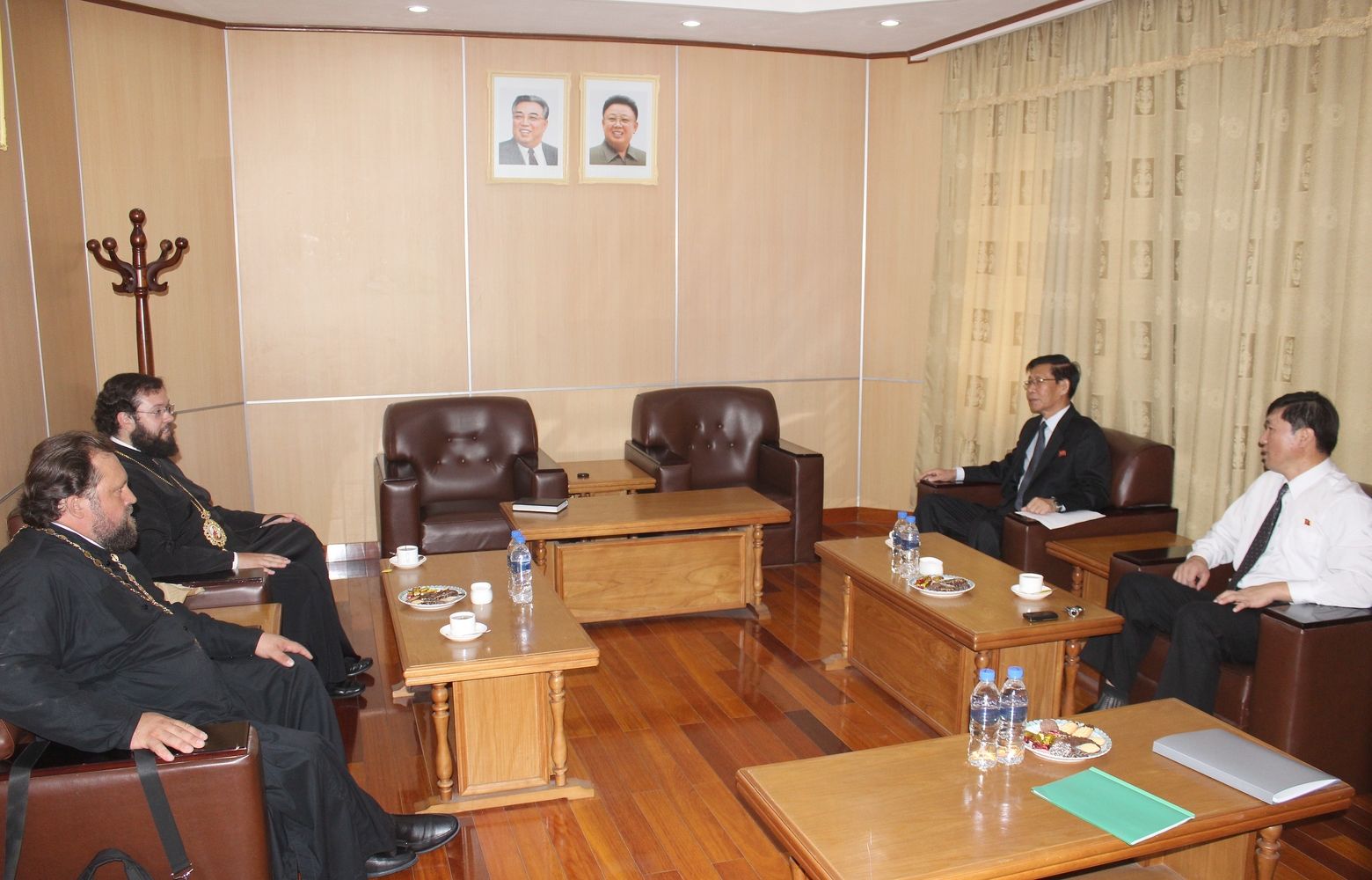 В тот же день состоялась встреча епископа Богородского Антония с заместителем председателя Президиума Верховного Народного Собрания КНДР Ким Ён Дэ. В ходе беседы, в которой также приняли участие А.И.Мацегора, российские дипломаты и сотрудники Православного комитета, владыка рассказал о состоявшихся в Троицком храме праздничных богослужениях и выразил благодарность руководству северо-корейского государства за внимание к нуждам православных верующих, проживающих в Пхеньяне и других городах страны. В свою очередь Ким Ён Дэ выразил удовлетворение в связи с тем, что построенный по инициативе покойного руководителя КНДР Ким Чен Ира храм живет полноценной приходской жизнью и способствует укреплению имеющих давнюю историю дружеских связей народов России и Кореи.