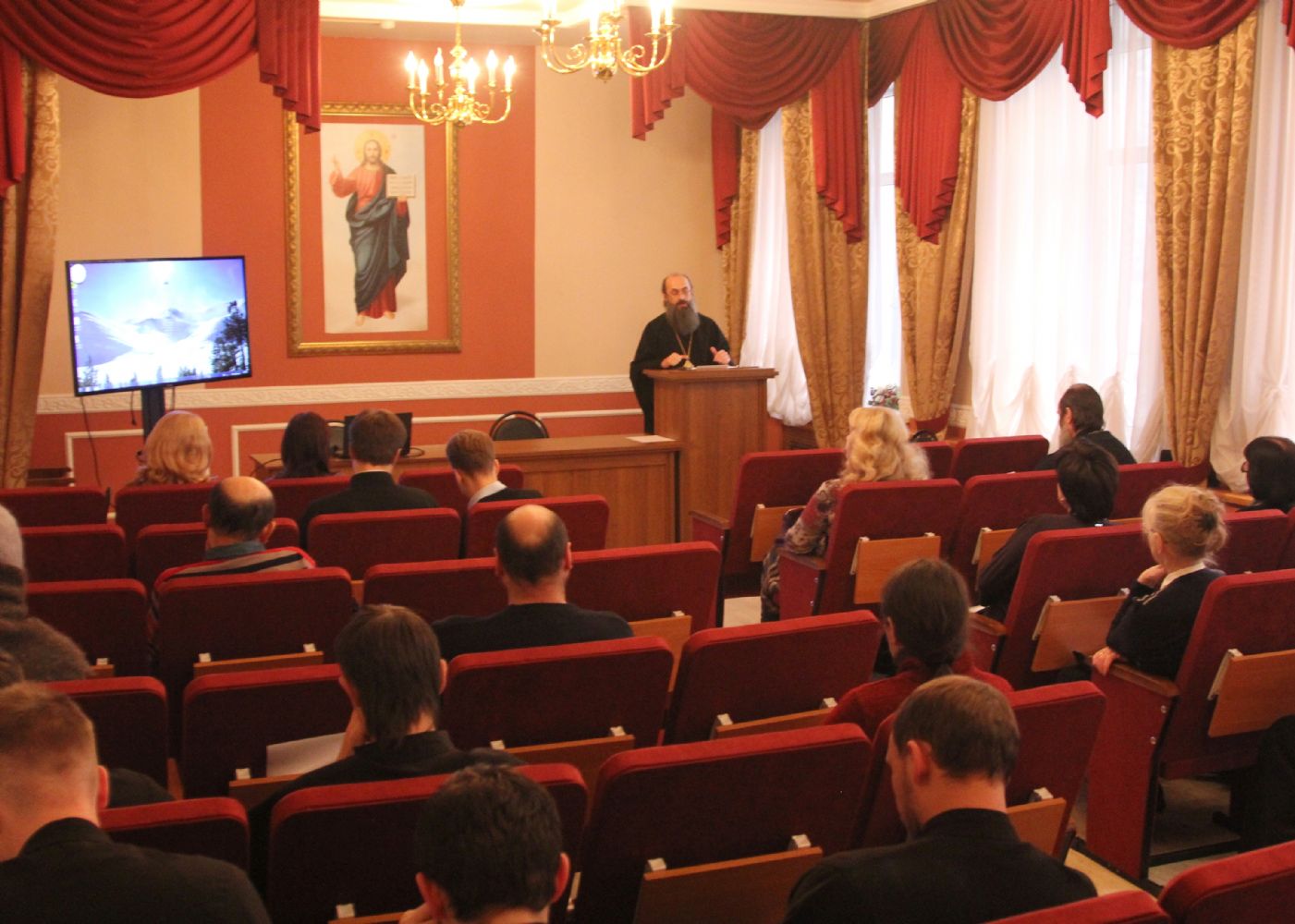 Организатор мероприятия — Духовный центр подготовки церковных специалистов. Заседание открыл викарий Владивостокской епархии епископ Уссурийский Иннокентий: