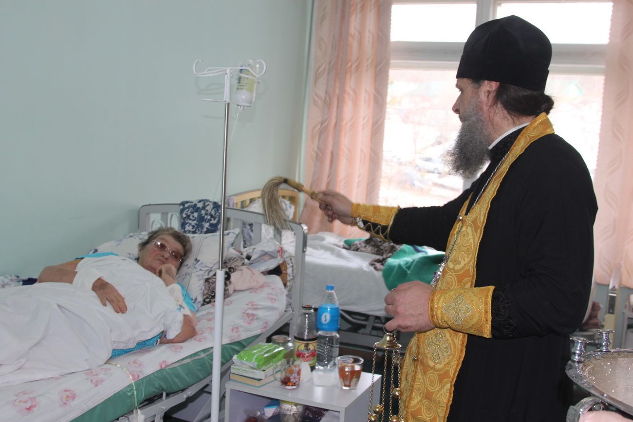 Отец Александр и в проповеди в храме святого целителя Пантелеимона, и здесь в больнице, постоянно напоминал людям о том, что день Крещения Господня особый для всех христиан. И причина этому – в величине дара, который в этот день даёт Господь через Церковь.