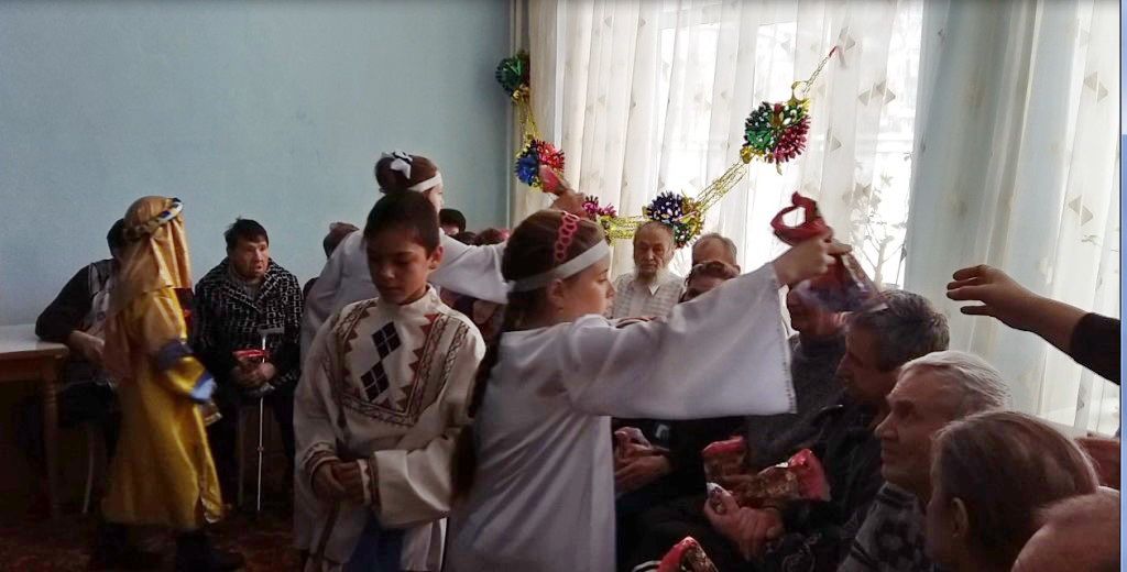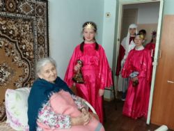 Спасское. На святках, которые православные празднуют от Рождества до Крещения, педагоги и дети Воскресной школы храма Вознесения Господня посетили пожилых людей в Спасском доме-интернате для престарелых и инвалидов с традиционным Рождественским поздравлением. Этим встречи проходят уже не первый год. Дети подарили сладкие гостинцы, собранные социальным отделом прихода храма в рамках благотворительной акции «Подари Радость на Рождество» и спели праздничные колядки и театрализованные сценки о рождении в мир Богомладенца Христа.