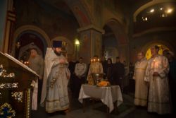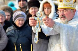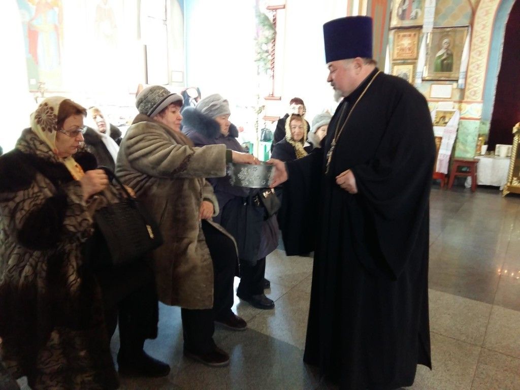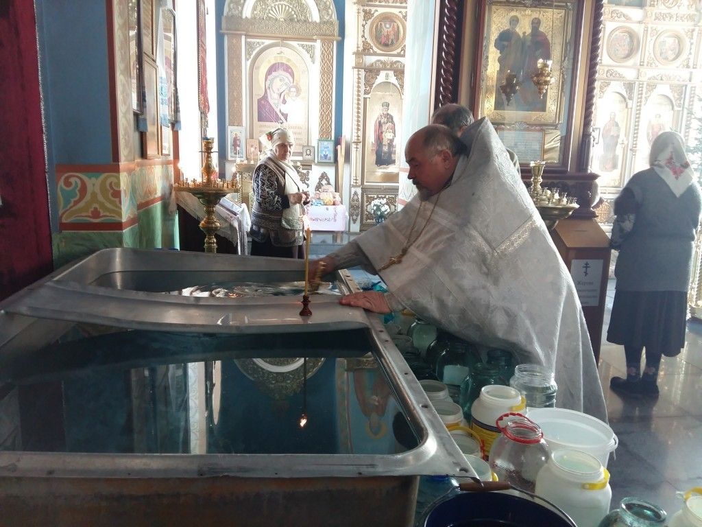 А утром 19 января была совершена праздничная Божественная Литургия настоятелем о.Владимиром Капитанюком. Перед Святым Причастием отец Владимир зачитал всем собравшимся поздравительное послание митрополита Владивостокского и Приморского Вениамина. По завершении Божественной Литургии духовенством храма было вновь совершено Великое освящение воды во дворе храма. В завершении молебна на улице отец Владимир окропил всех пришедших святой водой. А в храме, всех подходивших ко кресту, еще раз щедро окропил. Желающих набрать святой Крещенской воды было как всегда много, поэтому и воды было заготовлено большое количество. В течение всего морозного дня добровольцы и прихожане храма раздавали освященную воду.