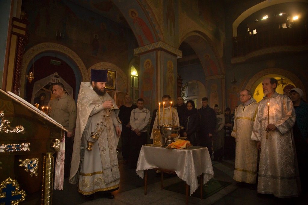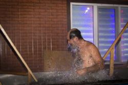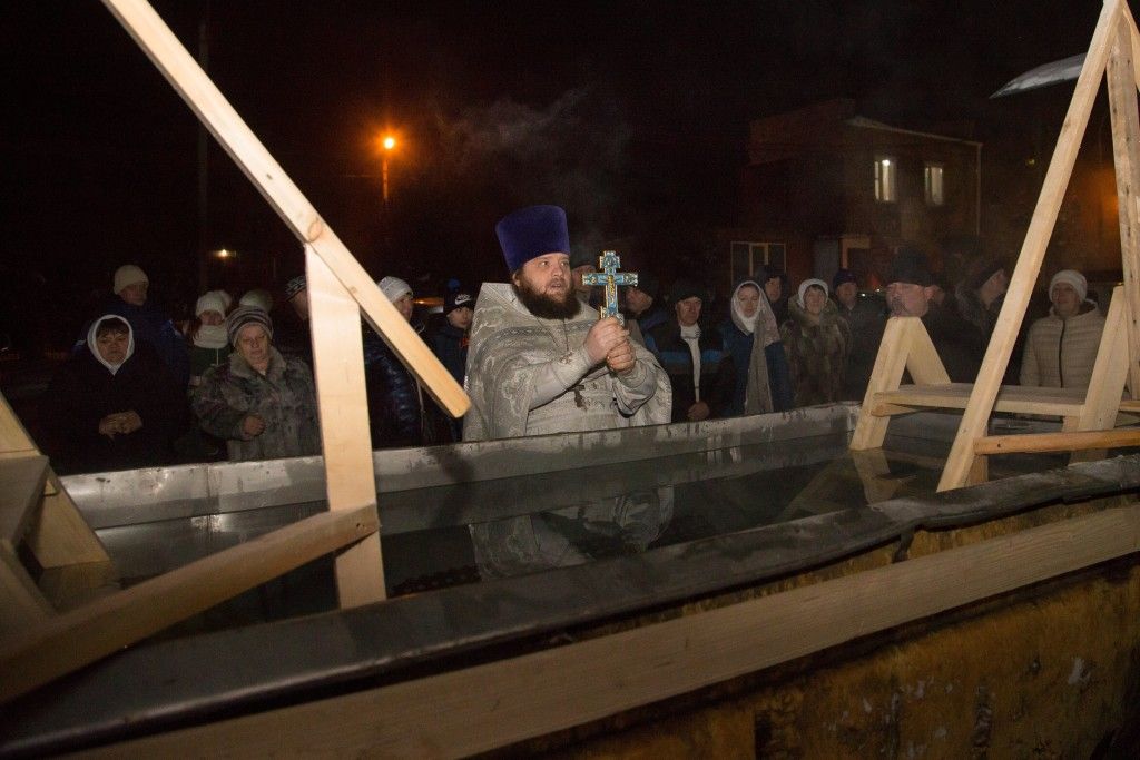 А ровно в 00 часов, в ночь с 18 на 19 января, в храме началось праздничное Богослужение, также завершившееся Великим освящением воды. Была освящена о.Иоанном вода и в «иорданской» купели на территории храма, которую специально приготовили для всех желающих. Православные христиане благоговейно окунались в святую воду.