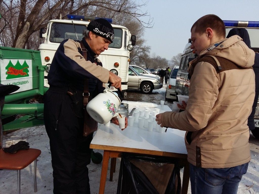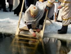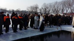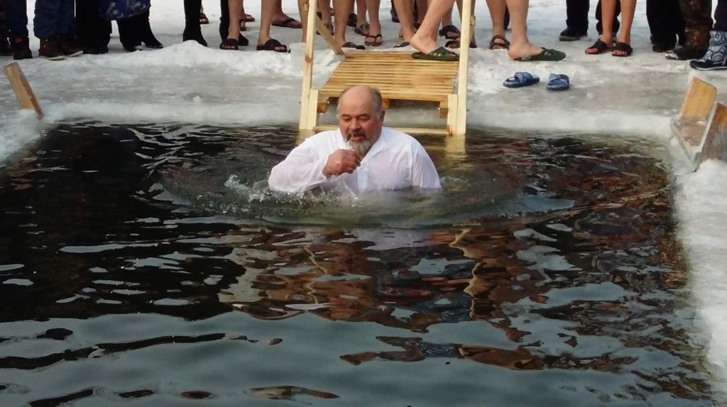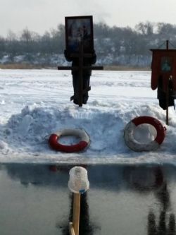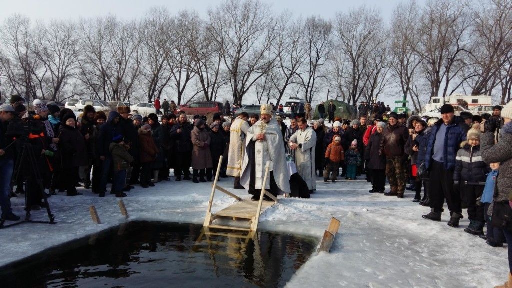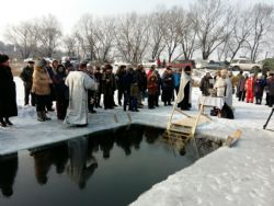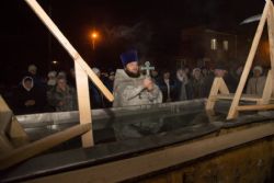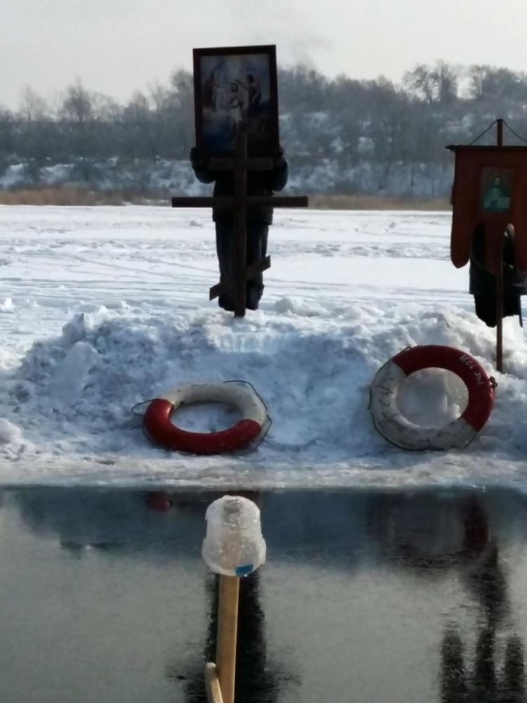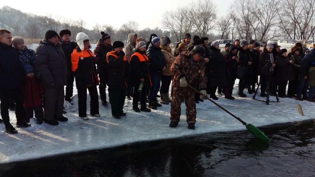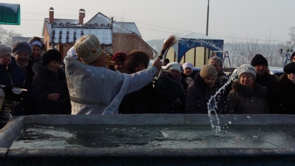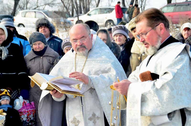 По традиции священники храма отправилось на озеро Петросянцево для освящения ледяной проруби — «иордани». На берегу озера была установлена отапливаемая палатка для переодевания, организована полевая кухня с вкусной горячей гречневой кашей и сладким чаем, дежурили машины скорой помощи и спасателей. Вокруг проруби дежурные выбирали из воды специальными сачками мелкие льдинки для безопасного купания. По окончании чина Великого освящения воды, отец Владимир обратился ко всем собравшимся с напутственным словом. Рассказал о значении праздника Богоявления — Крещения Господня. Пожелал духовной, телесной крепости и решимости всем желающим окунуться в Крещенскую купель. Благодарим за организацию и помощь всех неравнодушных людей: администрацию г. Спасск-Дальний, ОАО «Спасскцемент», местное общество моржей, ГОЧС, пожарную часть, МВД, станцию скорой помощи.