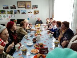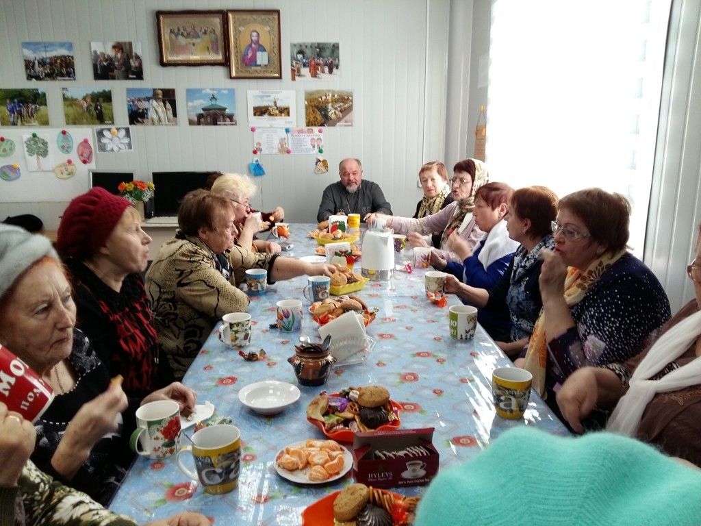 Беседа продолжилась в здании Воскресной школы, но уже за чашкой ароматного чая и просмотром фильма-притчи «Как Спаситель в гости ходил».