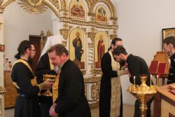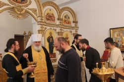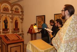Владивосток. 6 февраля 2017 года в Духовном центре подготовки церковных специалистов Владивостокской епархии началась первая установочная сессия на заочном обучении по программе подготовки специалистов в области миссионерской деятельности. Начались занятия молебном в крестовом храме в честь преподобного Сергия Радонедского. Молебен отслужил иерей Максим Точуков в сослужении иеродиакона Ермогена (Крещенко), клирика Находкинской епархии. По окончании молебна к студентам со словом напутствия обратился ректор Духовного центра митрополит Владивостокский и Приморский Вениамин.