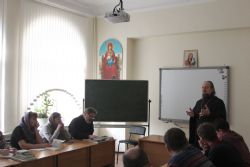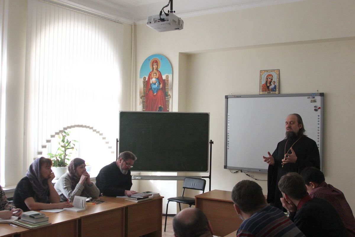 Первую, вводную лекцию прочитал проректор Духовного центра по учебной работе протоиерей Ростислав Мороз.