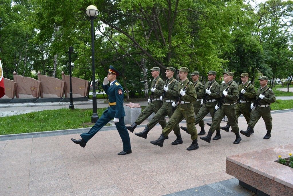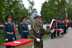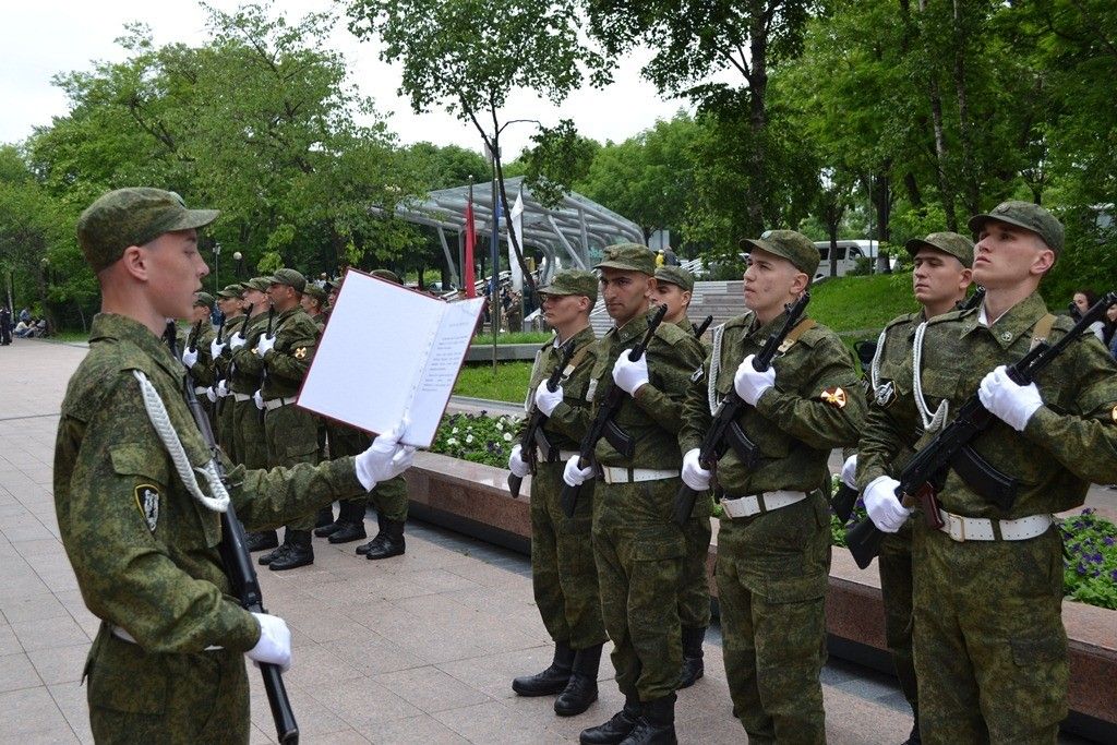 Владивосток. У звезды Героя Российской Федерации подполковника Ивана Владимировича Маслова в парке Победы прошла торжественная церемония принятия военной присяги военнослужащими Росгвардии - сообщает сайт Восточного округа Росгвардии. Присягу приняли 62 человека призыва 2017 года.