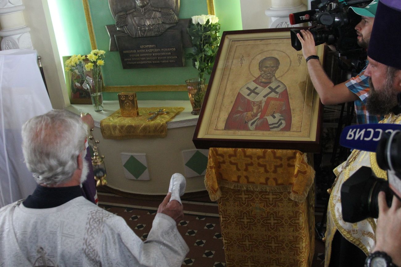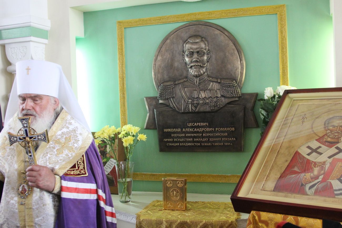 Владивосток. 14 июля 2017 года, в преддверии 99 годовщины гибели царской семьи, на железнодорожном вокзале обновлена памятная доска с барельефом святого царя-страстотерпца Николая II. На церемонии присутствовали заместитель главы Владивостока Игорь Ткаченко, председатель Торгово-промышленной палаты края Борис Ступницкий, начальник вокзала Ирина Тарабарова, руководитель отделения Всероссийского общества «Русское историческое просвещение «Двуглавый орёл» Игорь Чернозатонский, директор издательства «Валентин» Валентин Пак, казаки во главе с казачьим генералом Виталием Полуяновым, представители Дальневосточной железнодорожной магистрали. Митрополита Владивостокского и Приморского Вениамина сопровождали помощник благочинного I округа, настоятель храма в честь святых новомучеников и исповедников Церкви Русской протоиерей Андрей Машанов, настоятель морского храма в честь Порт-Артурской иконы Божией Матери протоиерей Алексий Сабанский, протодиакон Николай Наплавков.