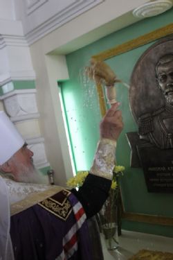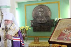 И.А. Чернозатонский зачитал приветственный адрес из Москвы, от главы Общества развития русского исторического просвещения «Двуглавый орёл» генерал-лейтенанта Леонида Петровича Решетникова. Затем митрополит Владивостокский и Приморский Вениамин вручил грамоты Оргкомитета принявшим участие в изготовлении, транспортировке и обеспечении работ по изготовлению это памятной доски с барельефом. Это жители Владивостока, Екатеринбурга, Москвы и Новороссийска.
