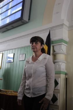 Белую ткань с обновлённого барельефа сняла начальник железнодорожного вокзала Владивостока Ирина Тарабарова.