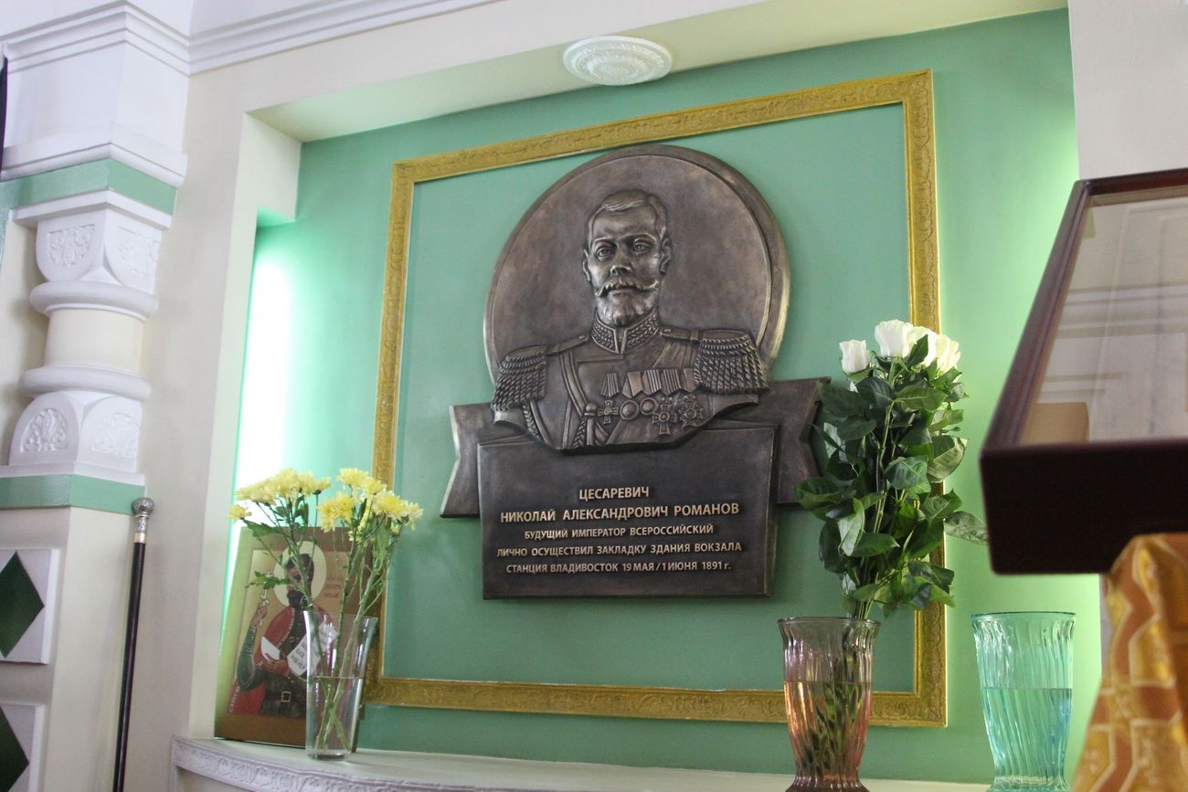 В начале церемонии присутствующие отметили, что отныне массивная бронзовая доска станет свидетельством посещения в 1891 году Цесаревичем Николаем Александровичем Романовым, будущим Императором, города Владивостока и всего Южно-Уссурийского края. Железнодорожный вокзал, как и начальный участок Великого Сибирского рельсового пути, сухой док и памятник адмиралу Геннадию Ивановичу Невельскому были заложены лично Цесаревичем во Владивостоке.