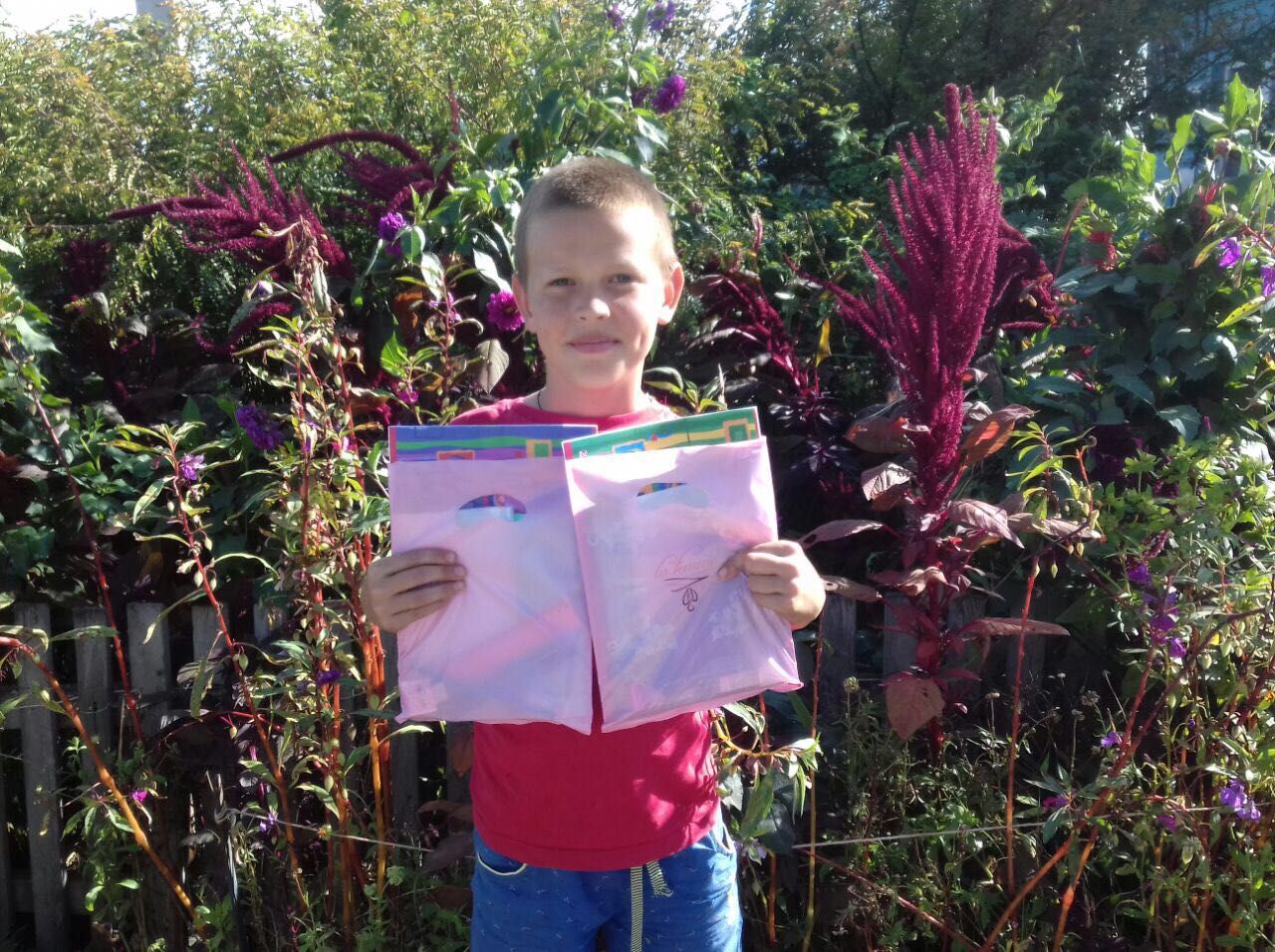 Набор состоял из 8 тетрадок 4 обложек, 4 ручки 4 простых карандаша, 2 точилки. 2 ластика, альбом для рисования, линейка. Даже небольшой вклад каждого благотворителя в сумме дал неоценимый результат – счастливы школьники и их родители.