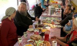 Настоятель прихода иеромонах Кирилл (Корниенко) за праздничным чаепитием провел с прихожанами Евангельскую беседу и ответил на вопросы, касающиеся укрепления семейных отношений; на встрече присутствовал клирик Иоанно-Богословского храма иерей Владимир Плотников с семьей. По случаю встречи приходского актива состоялось фотографирование.