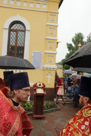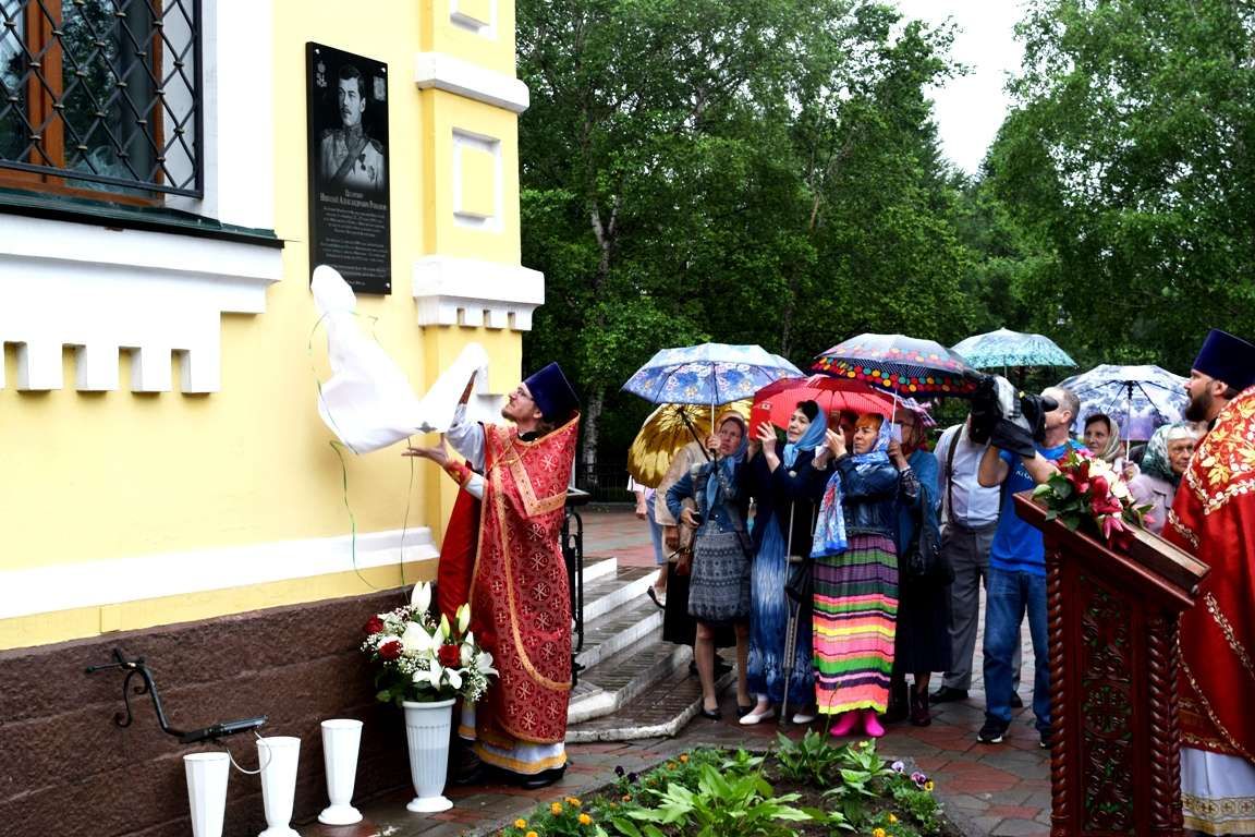На фасаде Покровского храма Уссурийска и была установлена мемориальная доска. Ее торжественное открытие предварил молебен, который возглавил благочинный II округа епархии протоиерей Сергий Якутов в сослужении духовенства храма. По благословению благочинного клирик храма иерей Павел Моисеев снял укрывавшее полотно, и открытие памятной доски состоялось.