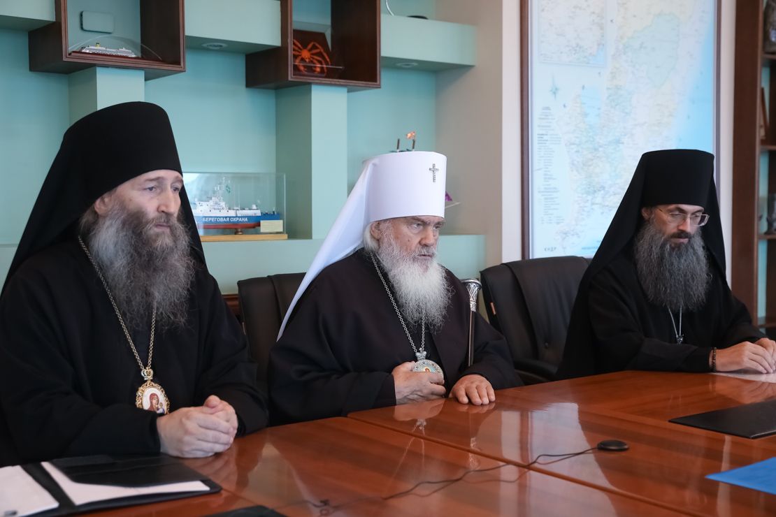 Глава митрополии митрополит Владивостокский и Приморский Вениамин; епископ Арсеньевский и Дальнегорский Гурий; и епископ Уссурийский Иннокентий, викарий Владивостокской епархии, обсудили с руководителем края А.В. Тарасенко вопросы межъепархиального взаимодействия, а также планы по развитию дальнейшего сотрудничества между органами государственной власти и Русской Православной Церковью в Приморье.