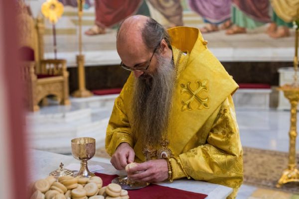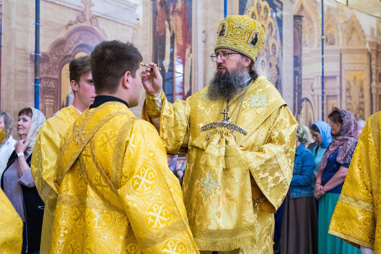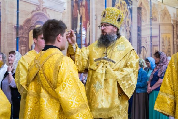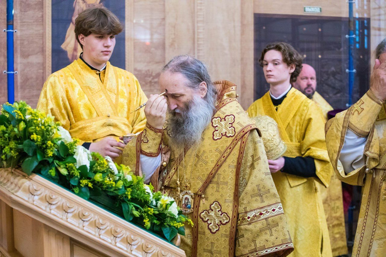 Во время утрени после целования праздничной иконы, в знак милости Божией ко всем грешникам, митрополит Павел помазал молящихся освященным елеем.