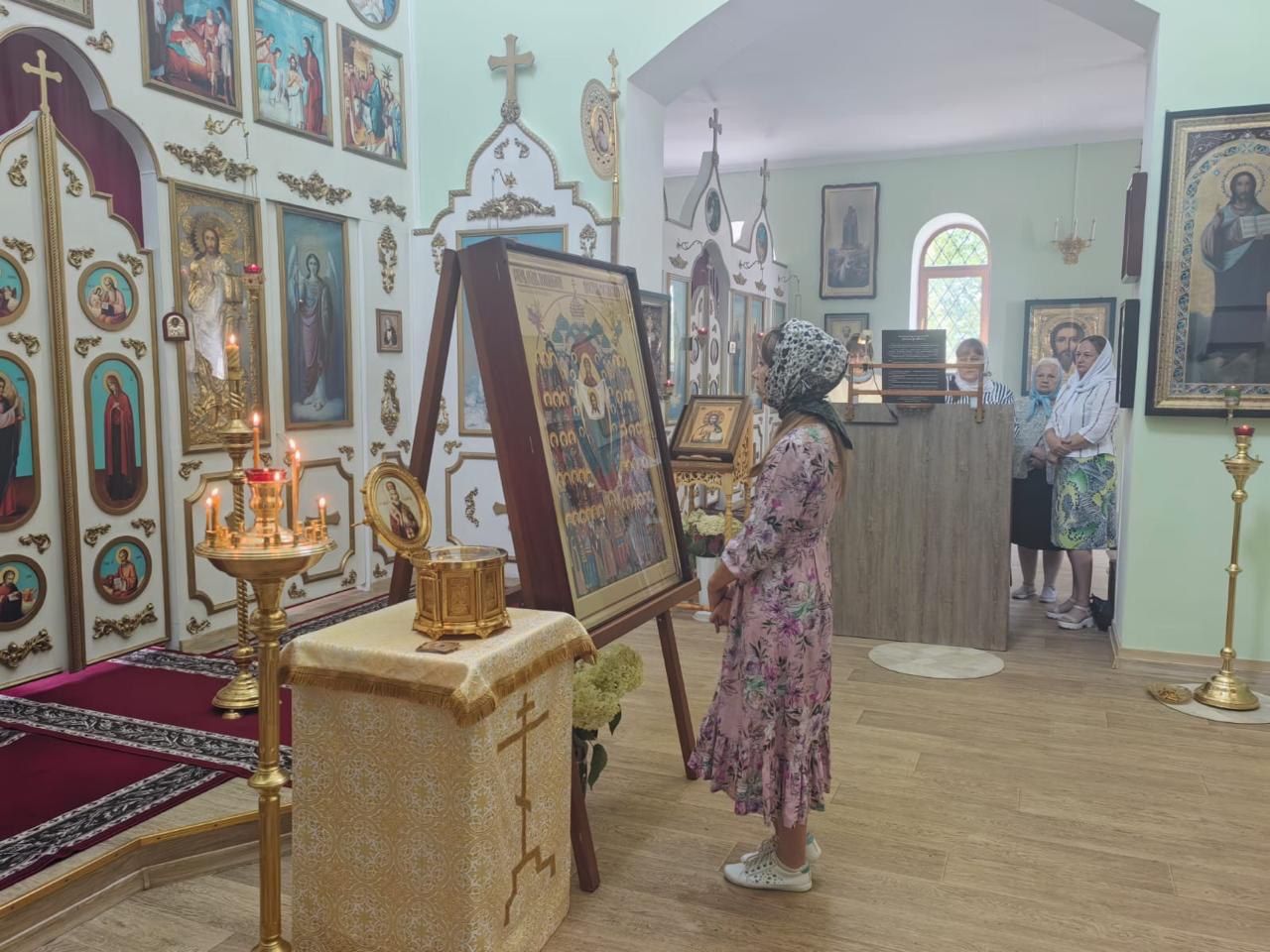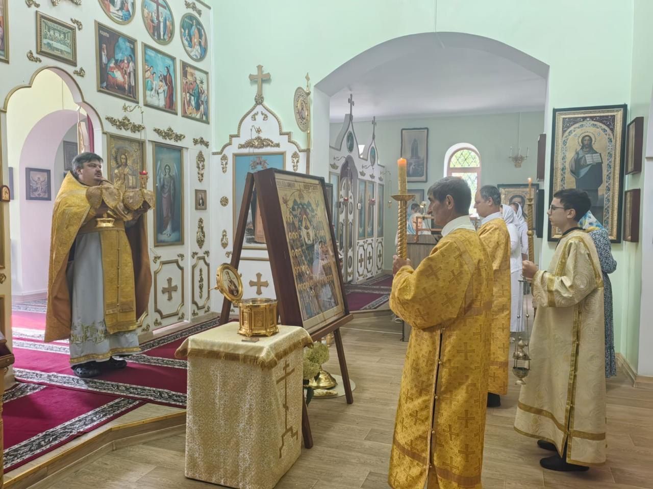 По окончании Литургии духовенство и прихожане прошли крестным ходом со святынями вокруг храма. В проповеди после молебна отец Стефан рассказал прихожанам об истории новонаписанной иконы и призвал сугубо молиться за наших воинов.