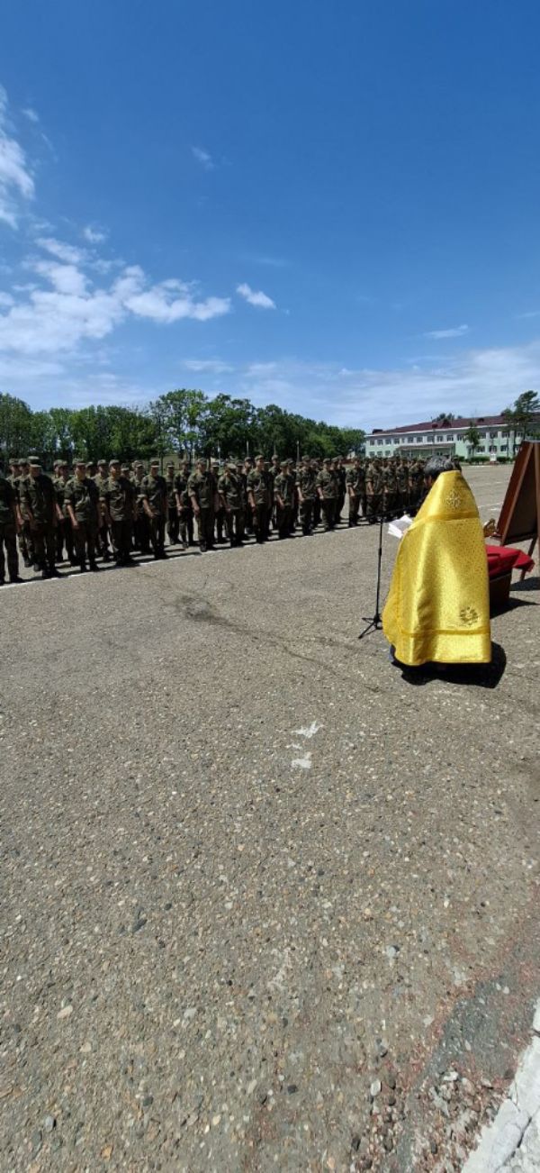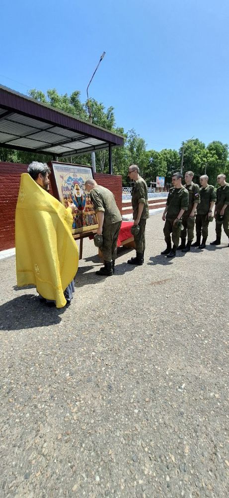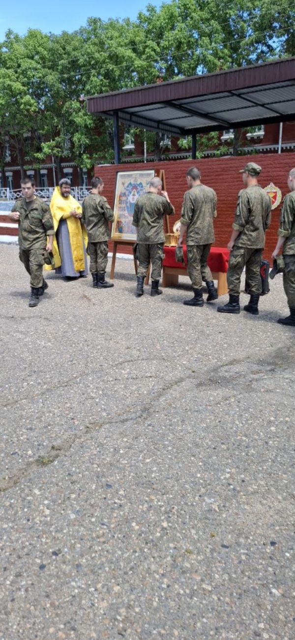 Отец Андрей обратился с речью к воинам, рассказав им о миссии Крестного хода, об истории новонаписанной иконы и о важности молитвенной поддержки воинов, сражающихся за наше Отечество на западных границах. Пастырь пожелал успехов в службе, помощи Божией и укрепления духа. Во время целования святынь военнослужащим были вручены маленькие иконки на молитвенную память.