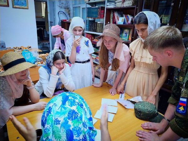 Игра была продумана как связь различных эпох истории нашей страны. Первая станция, с которой начался квест, была посвящена святым заступникам семьи блгг. князю Петру и княгине Февронии. А дальше маршруты команд расходились: предстояло вспомнить святых защитников земли Русской, потренироваться в сборке-разборке автомата, побыть саперами и летчиками, вспомнить знаменитые вехи военной истории, наших великих полководцев, пройти путь Великой Отечественной войны, обмундировать воинов различных эпох, спеть военные песни. На последней станции ребята нарисовали открытки нашим бойцам в зону СВО.