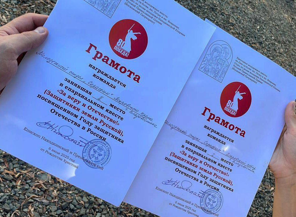 6 июля молодежный отдел "Серафим" Покровского храма г. Владивостока с триумфом выступил на квесте «За веру и Отечество», который проводился по благословению епископа Находкинского и Преображенского Николая в Находкинской епархии в г. Большой Камень.