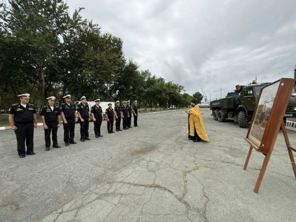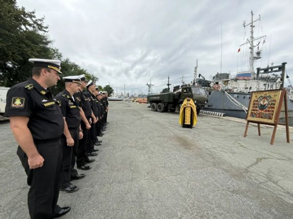 Икона святых покровителей воинства побывала в Свято-Никольском храме и у военных моряков