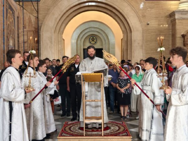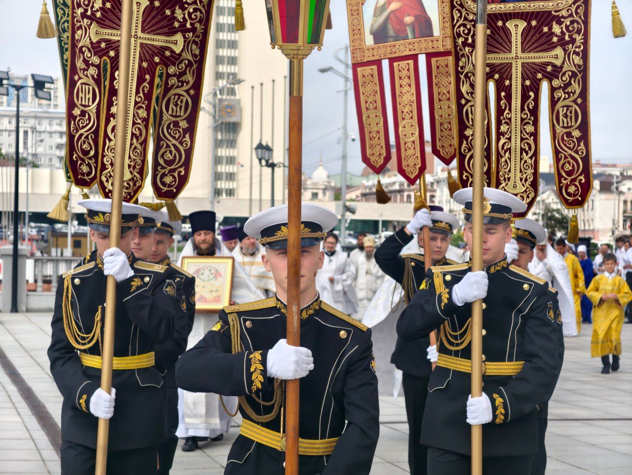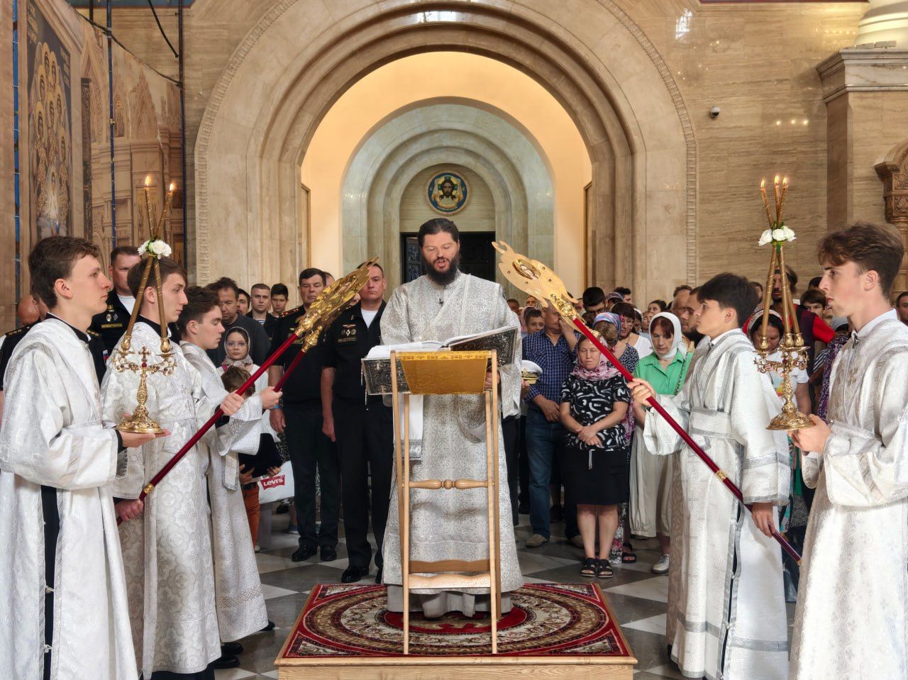 Богослужение совершалось перед прибывшей в храм иконой «Собор святых покровителей воинства российского». В числе молящихся были командующий ТОФ, адмирал В. Н. Лиина, начальник управления по Приморскому краю ФСБ России, генерал-лейтенант Д. Н. Юдин и глава города Владивостока Константин Шестаков, военные моряки, прихожане владивостокских храмов. Многие из них сегодня причастились Святых Христовых Тайн.