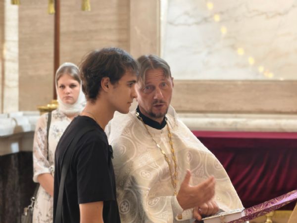 — Святые богословы говорят нам, что на горе Фавор сам Христос не изменился. Он преобразил чувства святых апостолов, и они стали видеть иную, духовную, реальность, и видели Его в таком свете, в котором Он всегда пребывает. Преображением Господь показывает и людям, и ангелам — и Свое всемогущество, и Свое смирение, и Свою любовь — для того, чтобы и мы стали похожими на Него, чтобы мы тоже преобразились, чтобы мы возжелали святости, возжелали общения с таким Богом.
