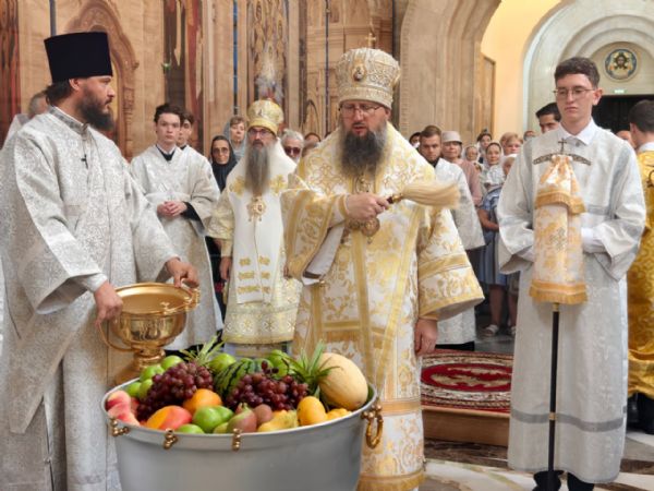 Завершилось праздничное богослужение традиционным освящением яблок и других сезонных фруктов.