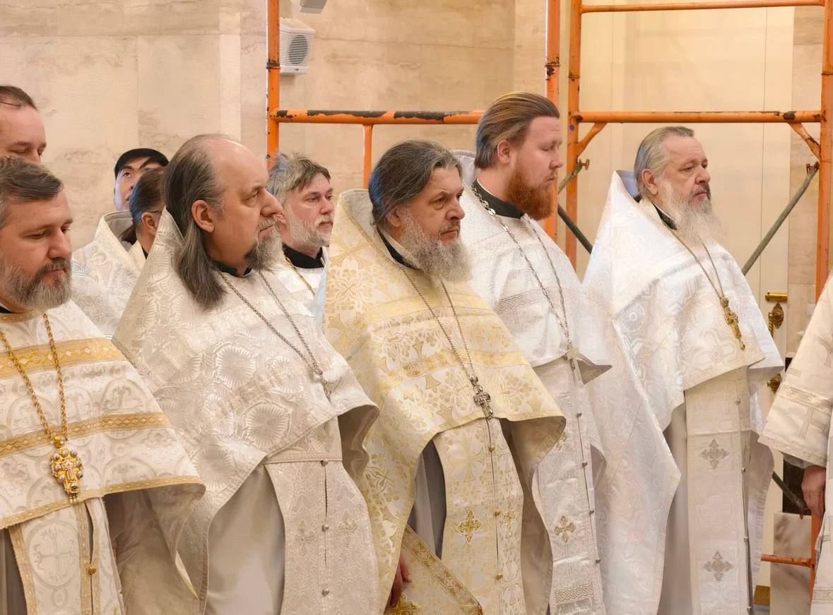 Архипастырям сослужили: протоиерей Игорь Талько, секретарь Владивостокской епархии иерей Илия Талько, ключарь Спасо-Преображенского собора иерей Максим Точуков, ответственный за сестричество социального отдела епархии протоиерей Александр Талько, протоиерей Максим Романенко, руководитель отдела епархиального религиозного образования и катехизации протоиерей Ростислав Мороз, игумен Антоний (Каменчук), протоиерей Вадим Маишев, протоиерей Даниил Нефедьев, протоиерей Андрей Калчев, протоиерей Димитрий Федорин, благочинные благочиний Владивостокской епархии и духовенство епархии.