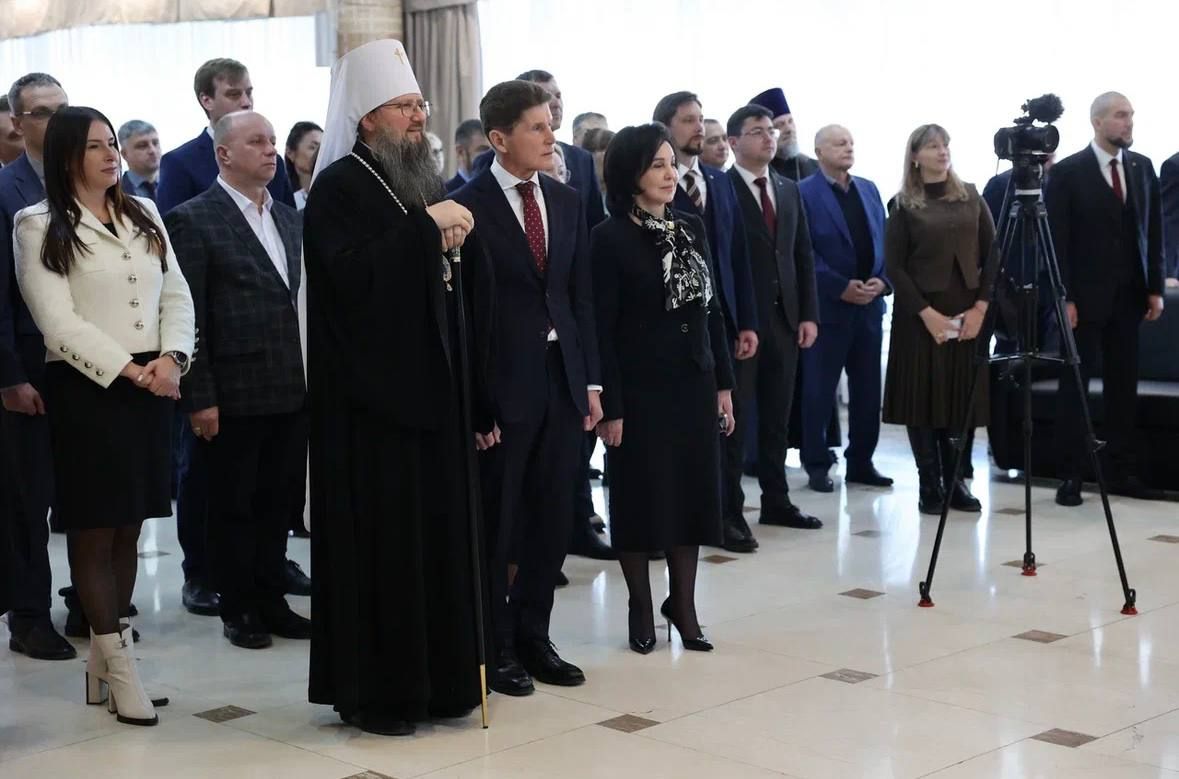 15 января в Правительстве Приморского края состоялось мероприятие, посвященное святочным дням. На встрече присутствовали губернатор Приморского края Олег Кожемяко, митрополит Владивостокский и Приморский Павел, глава г. Владивостока Константин Шестаков и сотрудники городской администрации.