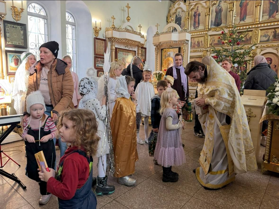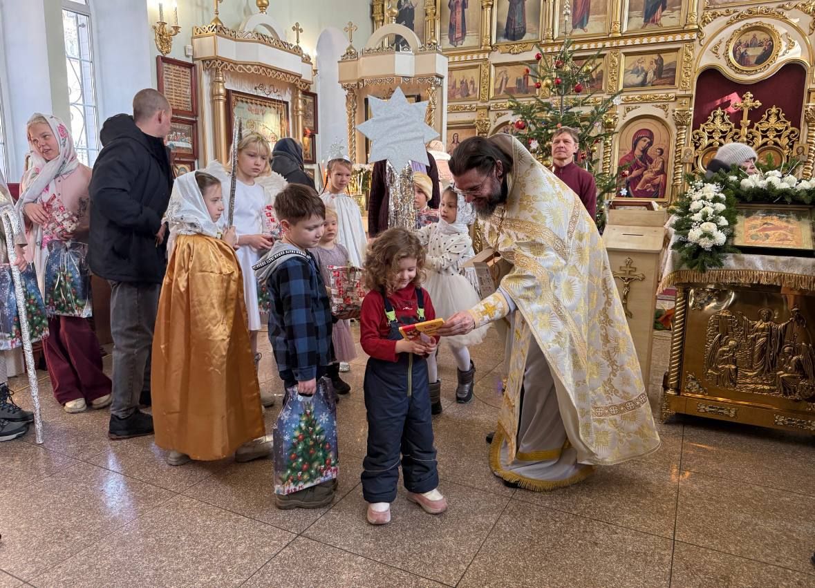 По окончании представления настоятель храма протоиерей Даниил Нефедьев еще раз поздравил всех присутствующих с Рождеством Христовым и отметил особое значение участия детей в жизни прихода. Батюшка вручил детям и прихожанам Рождественские подарки.