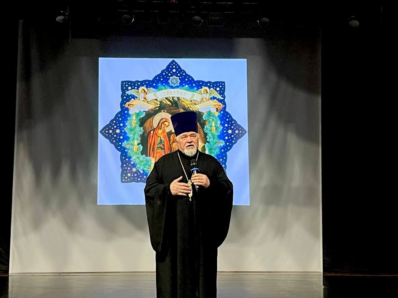 С приветственным словом к собравшимся обратился отец Владимир. Батюшка поздравил всех присутствующих с великим и радостным праздником — Рождеством Христовым.