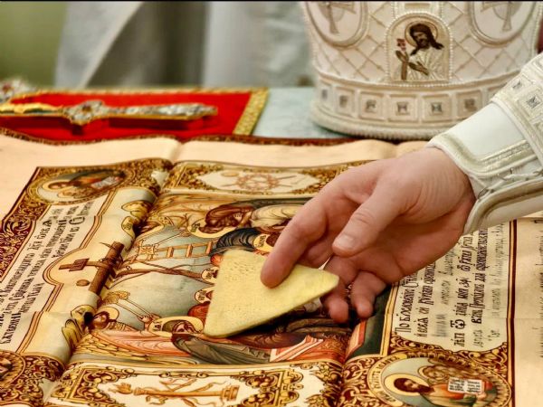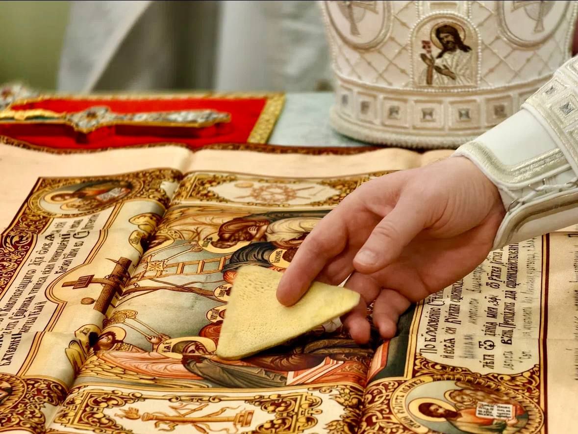 За богослужением глава митрополии совершил чин великого освящения воды. Все прихожане были окроплены освященной водой.