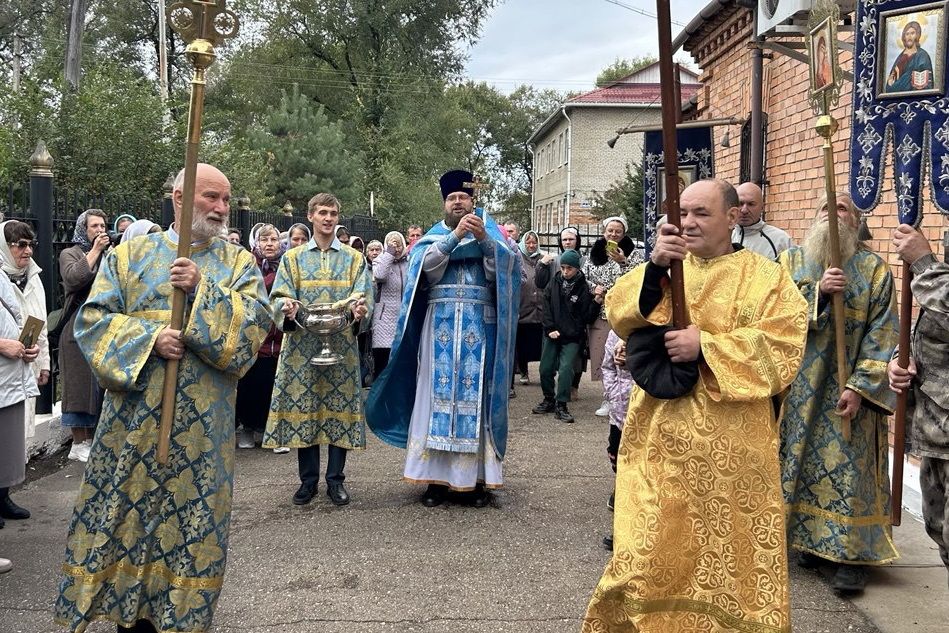 В проповеди отец Владимир отметил: «Как деточки ходят под защитой своей матери, так и мы сегодня пришли на праздник и вышли на крестный ход – под защиту Божией Матери — Пресвятой Богородицы, поклониться её образу. Она заступница рода христианского, Царица Небесная. Она нас утешит, услышит, поможет, исходатайствует».