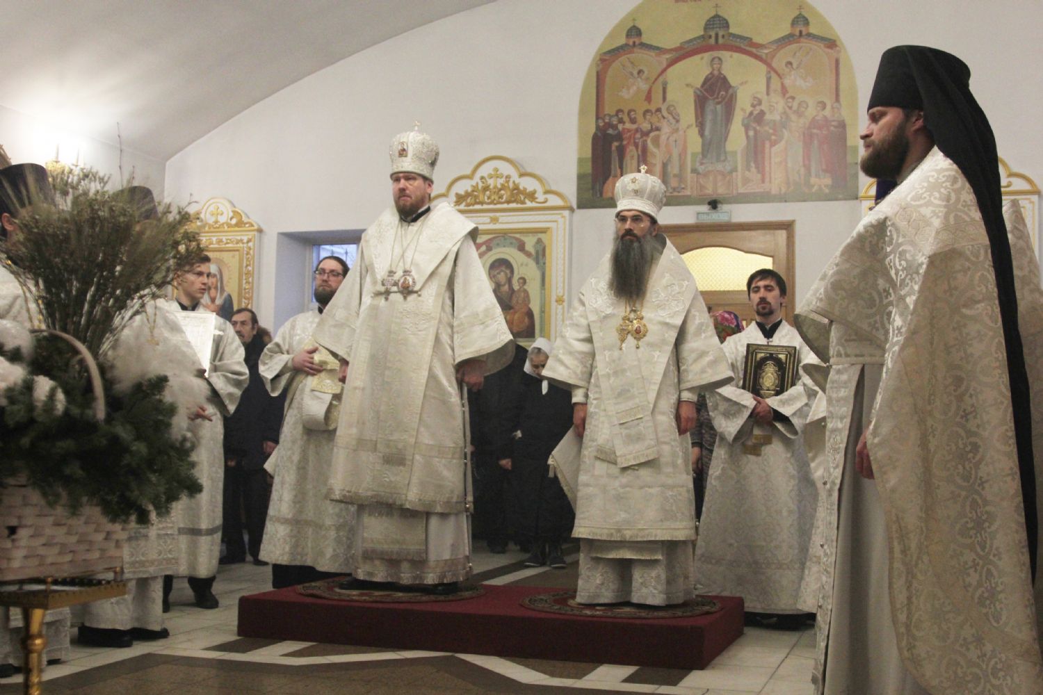 - Ваше Преосвященство, дорогой владыка Иннокентий, Ваше Высокопреподобие и Преподобие, дорогие братья и сестры. Сердечно всех вас поздравляю с продолжающимся празднованием Великого и спасительного праздника Рождества Господа нашего Иисуса Христа. Хотелось бы поблагодарить владыку Иннокентия — как за труды настоятельские в этом Успенском храме, так и за ту помощь правящему архиерею, которую Вы осуществляете ежедневно, являясь Викарием епархии. Сегодня нас объединила Святая Евхаристия — это соединение с Господом является свидетельством того, что плоды, которые Рождество Христово принесло роду человеческому, продолжают распространяться до сего дня. Верим, что эти плоды будут укреплять христиан и до второго Пришествия Господа нашего Иисуса Христа. Эти плоды уже здесь, на Земле, соединяют нас с миром Горним, Небесным... В Рождестве Христовом творение вновь воссоединилось со своим Творцом. Новый Завет заключил человек с Богом, вновь приблизившись к своему Создателю, чтобы иметь жизнь с избытком, одухотворенную, связанную с призванием, к которому призывается человек — служить Богу, своим ближним, возделывать поле своей души, исправлять свои недостатки с помощью той благодати, которая обильно преподаваема в храмах Божиих... «Слава в Вышних Богу, и на Земле мир, в человецех благоволение» — мы вновь и вновь слышим это воспетое ангелами песнопение, рассуждая о том мире, который должен распространиться на земле.