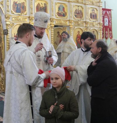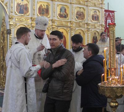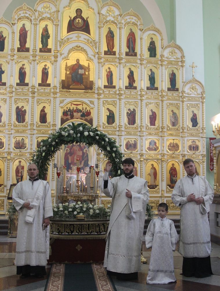 Его Высокопреосвященству сослужили ключарь собора протоиерей Александр Талько, протоиерей Константин Чунчук, протоиерей Игорь Шевчук, игумен Тихон (Иршенко), иерей Владимир Брагин, иерей Максим Точуков.