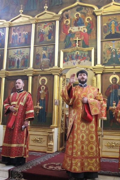 Его Высокопреосвященству сослужили ключарь собора протоиерей Виктор Жильцов, протоиерей Сергий Шуталев, игумен Алексий (Несмеев), иерей Николай Манукян.